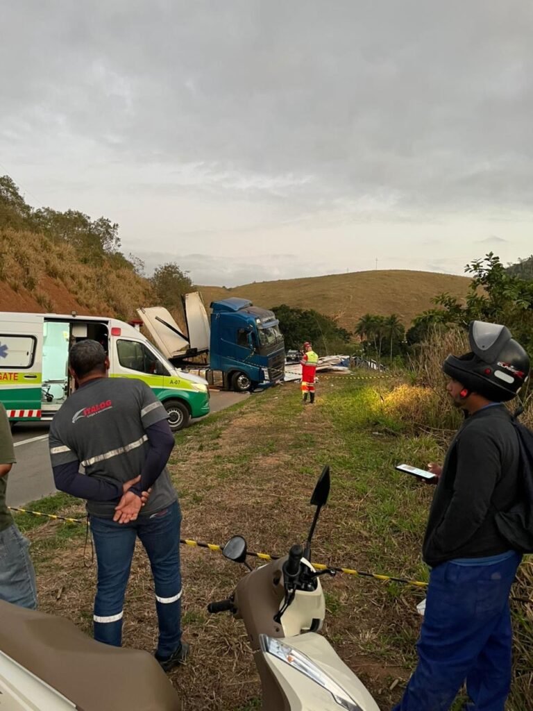 Vídeo: BR-101 fica totalmente interditada em Itapemirim após acidente com carreta de MDF