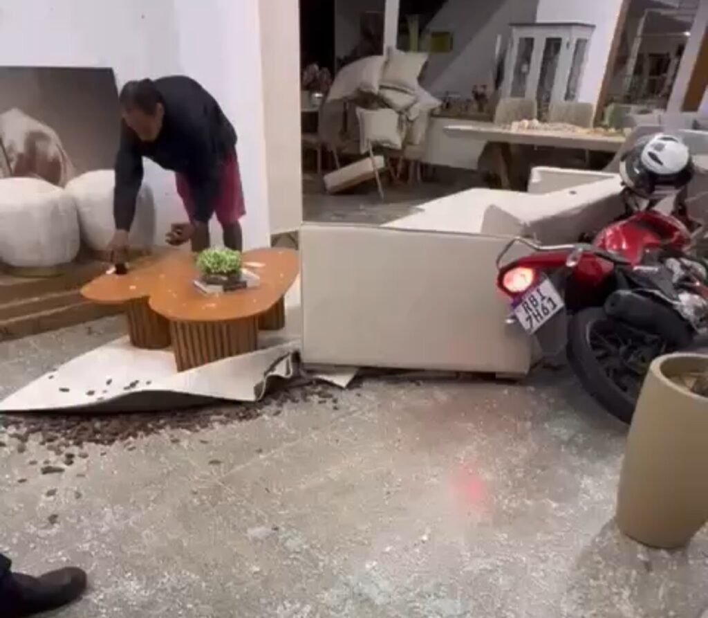Vídeo: Motociclista em fuga invade loja de móveis após perseguição