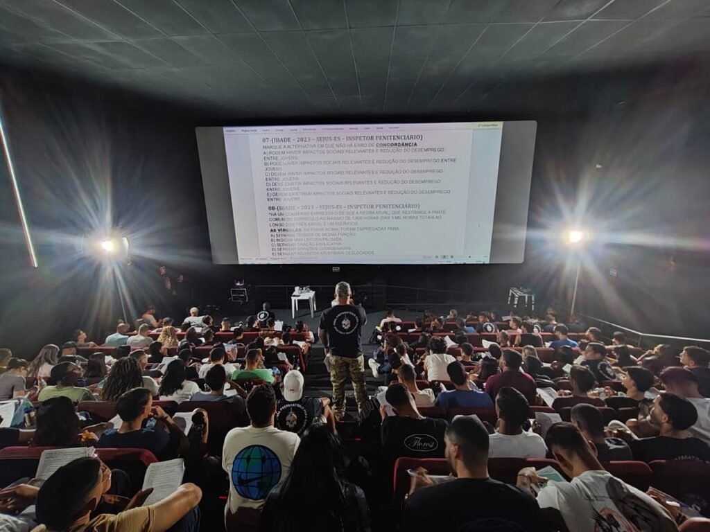 O Cabo Vidal promoveu neste sábado a maior revisão de véspera do Espírito Santo para o concurso da Polícia Penal, reunindo mais de 160 alunos em um momento único de preparação intensiva. O evento foi realizado no Centro Empresarial Via Sul, no Espaço Cinemak, das 08h às 19:00, garantindo aos candidatos uma imersão completa até a finalização do conteúdo.