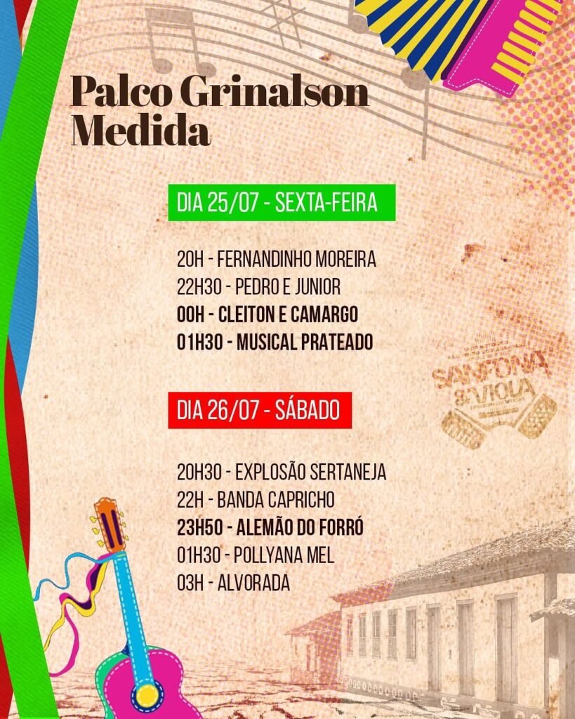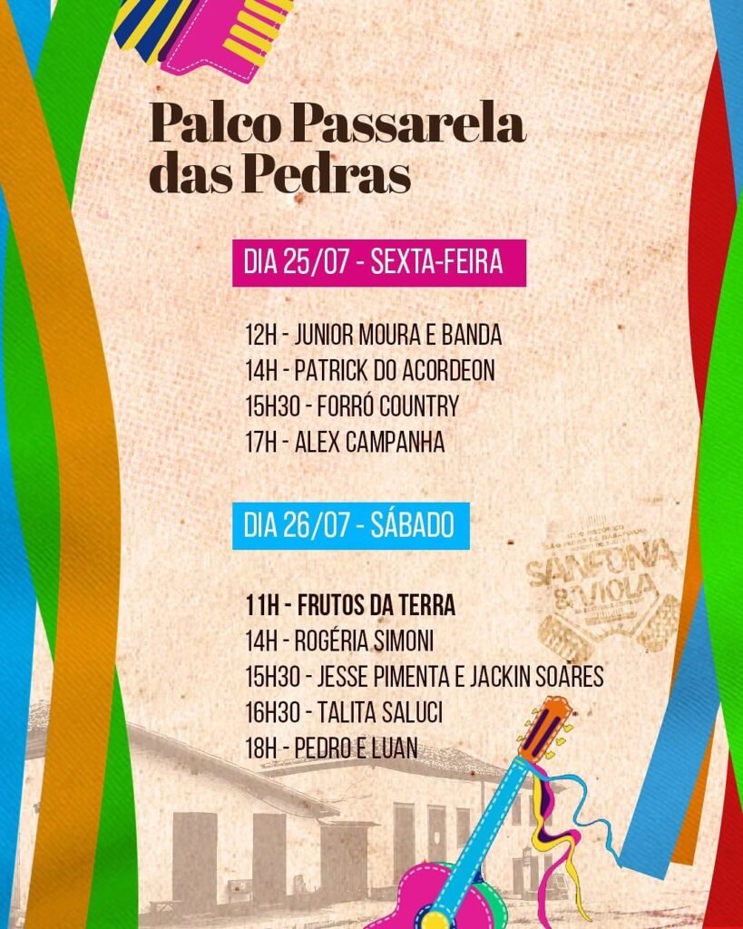 Com programação distribuída em três palcos espalhados pelo charmoso distrito, o evento promete agradar todos os gostos com uma mistura de forró, moda de viola, cultura popular e muita energia boa! Entre os destaques estão os shows nacionais de Alemão do Forró, que leva multidões por onde passa com seu ritmo contagiante, e da dupla Cleiton & Camargo, ícones da música sertaneja romântica que prometem emocionar o público.