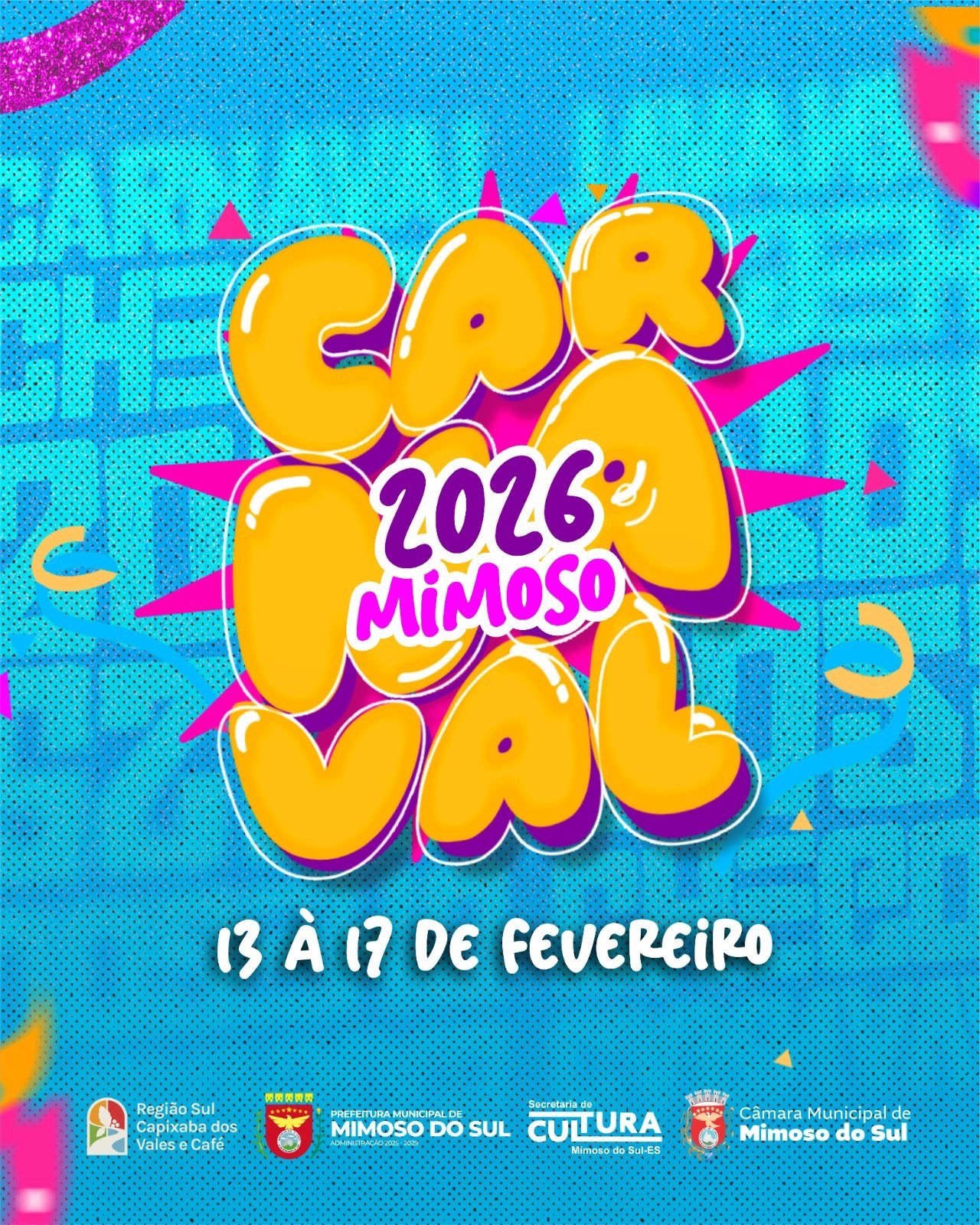 O Carnaval Cultural 2026 de Mimoso do Sul celebra a história, a identidade e a alegria do povo mimosense. Com a força dos blocos de rua tradicionais e novos blocos comunitários, carro alegórico, alas, bateria de escola de samba e bandas regionais, o evento revive a tradição do carnaval local e valoriza quem construiu essa história. Uma programação pensada para toda a família, unindo cultura, respeito e diversão. Venha viver um Carnaval que celebra o passado, fortalece o presente e projeta o futuro de Mimoso do Sul.