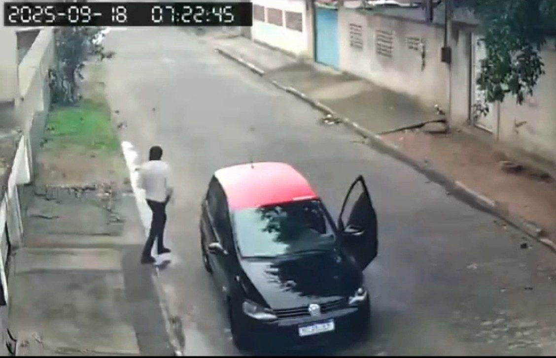 Um comerciante de 37 anos teve seu veículo tomado de assalto na manhã desta quinta-feira (18), no bairro Bicanga, na Serra. Conforme mostram imagens divulgadas, o homem estacionou em frente à sua casa, deixou o carro com a porta aberta e entrou no imóvel. Nesse momento, um criminoso armado entra, aborda a vítima exigindo a chave do automóvel e foge com o carro.