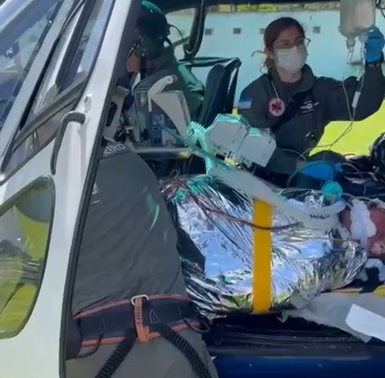 Após ser estabilizado no pronto atendimento do município, o homem foi transportado de helicóptero pela equipe aeromédica do Núcleo de Operações e Transporte Aéreo (NOTAER) até o Hospital Estadual Dr. Jayme Santos Neves, na Serra. O estado de saúde dele não foi informado pela Secretaria de Estado da Saúde (Sesa).
