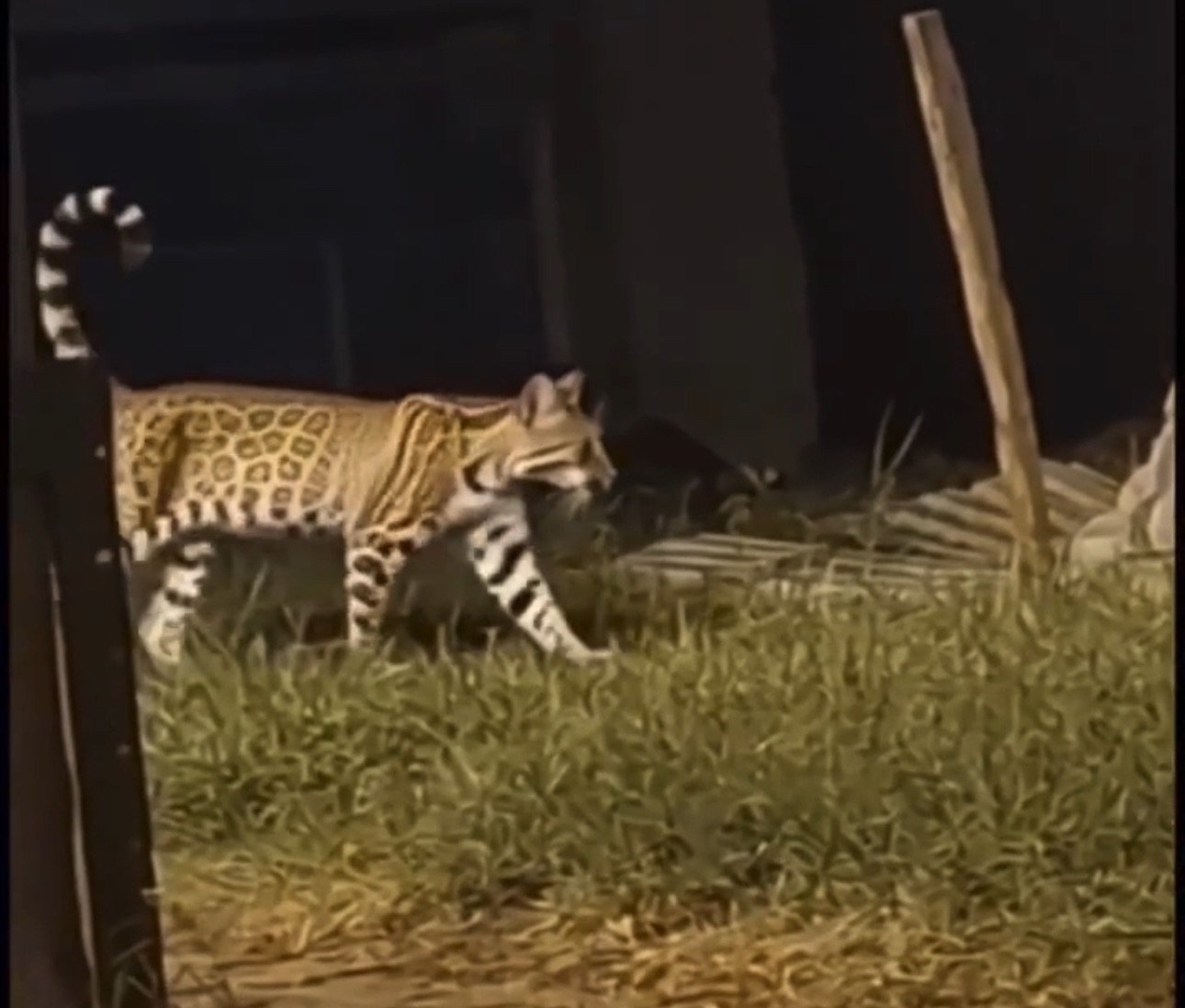 Vídeo: Jaguatirica é flagrada passeando por praça em Guaçuí