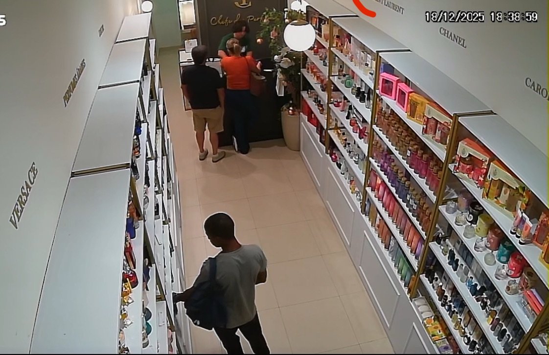 Uma loja de perfumes localizada na Rua 25 de Março, no Centro de Cachoeiro de Itapemirim, foi alvo de furto no início da noite desta quinta-feira. Uma câmera de segurança registrou o momento em que um jovem entra no estabelecimento, subtrai um perfume e deixa o local logo em seguida. As imagens devem auxiliar na identificação do suspeito.