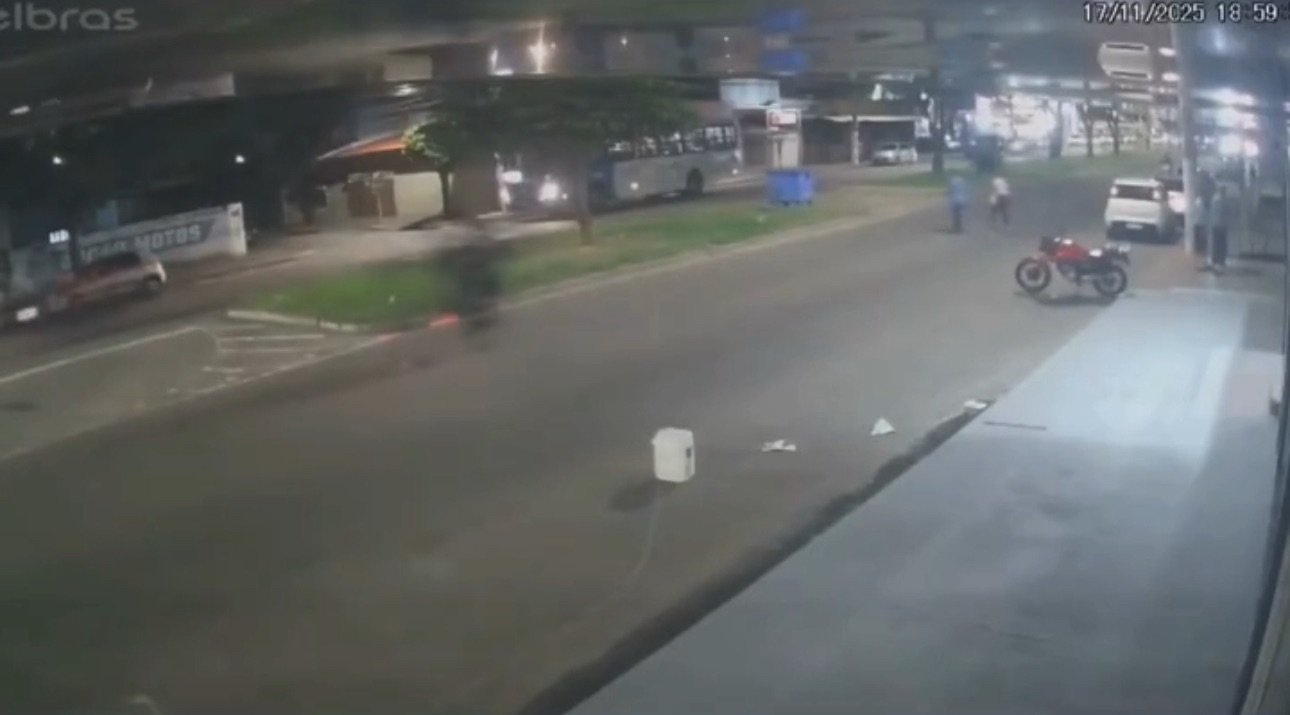 Imagens de uma câmera de segurança registraram o momento em que um motociclista empinava uma moto na Avenida Brasília, em Porto Canoa, na Serra, quando atingiu o casal José Geraldo Torres, de 82 anos, e Maria Auxiliadora Torres, de 78. O atropelamento ocorreu por volta das 19h desta segunda-feira (17). José Geraldo morreu no local, enquanto Maria Auxiliadora foi socorrida ao Hospital Jayme Santos Neves, onde permanece internada. O condutor fugiu sem prestar socorro.