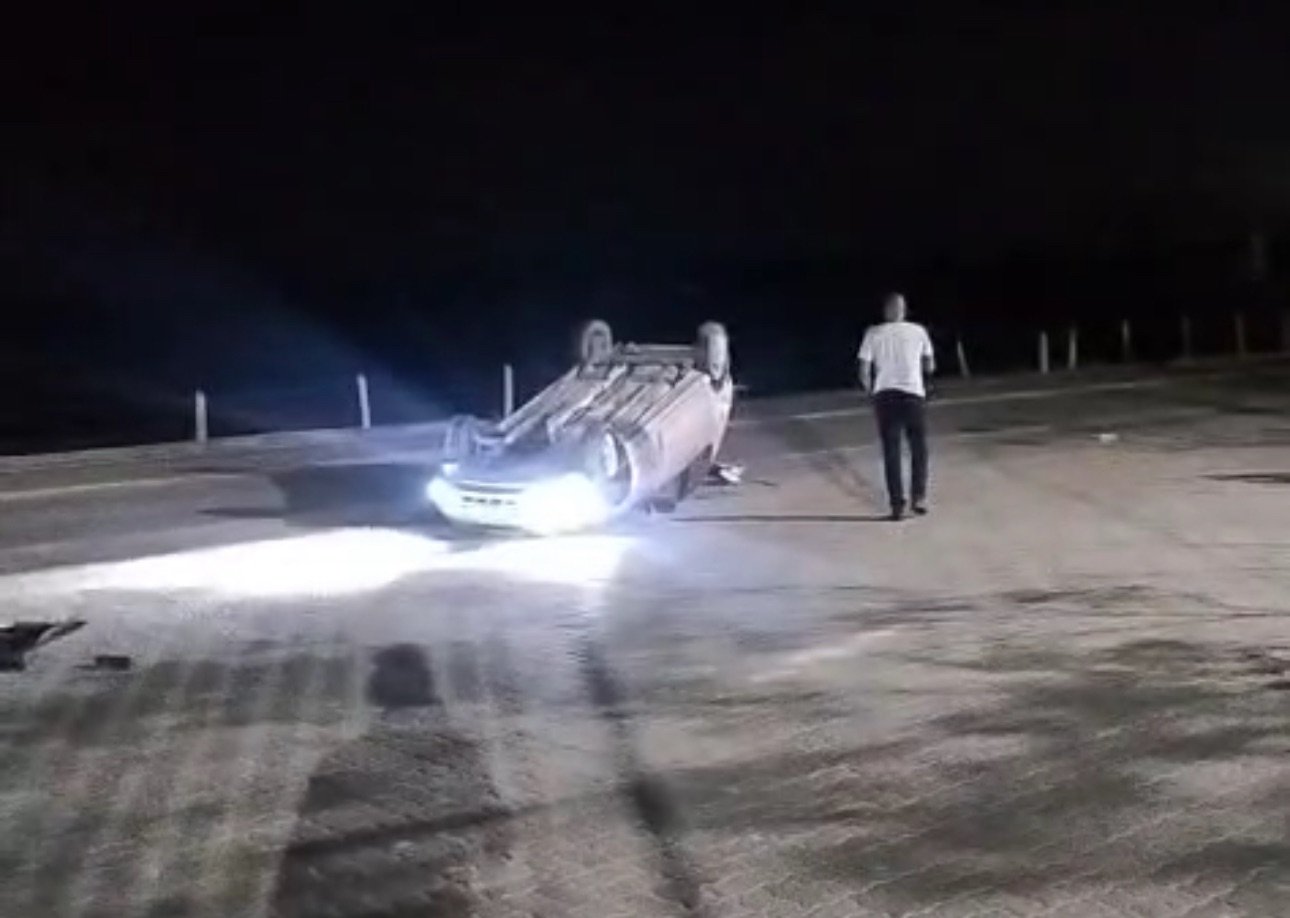Capotamento na noite desta sexta-feira em frente ao depósito da HCM, em Campo Acima, em Itapemirim, região Sul do Espírito Santo. Felizmente ninguém ficou ferido.
