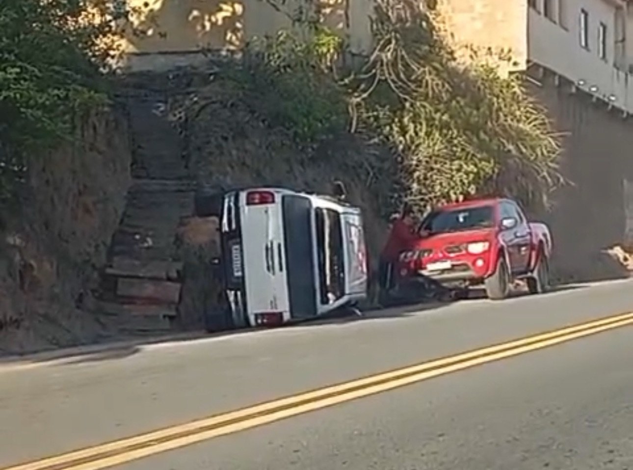 Uma caminhonete amanheceu tombada, nesta segunda-feira (6), na chegada de Marataízes, próximo ao supermercado Multishow. Sem informação sobre vítimas.